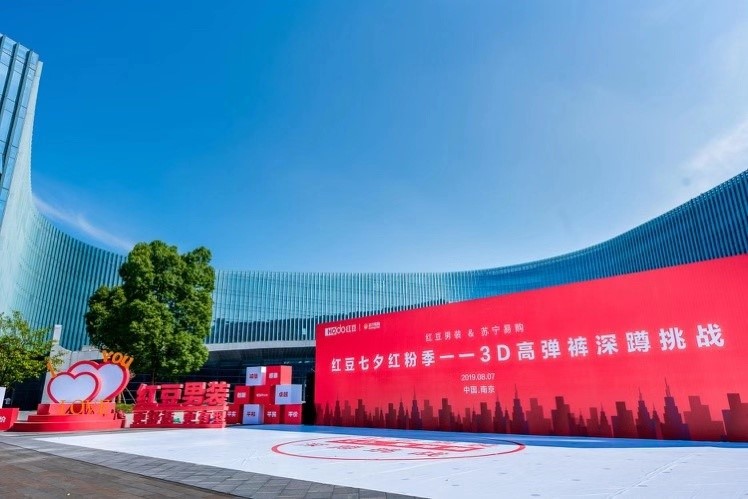 ? ? ? ? 8月7日紅豆走進蘇寧,一場盛大的第三代紅豆3D高彈褲新品首發儀式在南京蘇寧總部啟動,紅豆與蘇寧強強聯手,在七夕當天聯袂獻上這份七夕大禮。