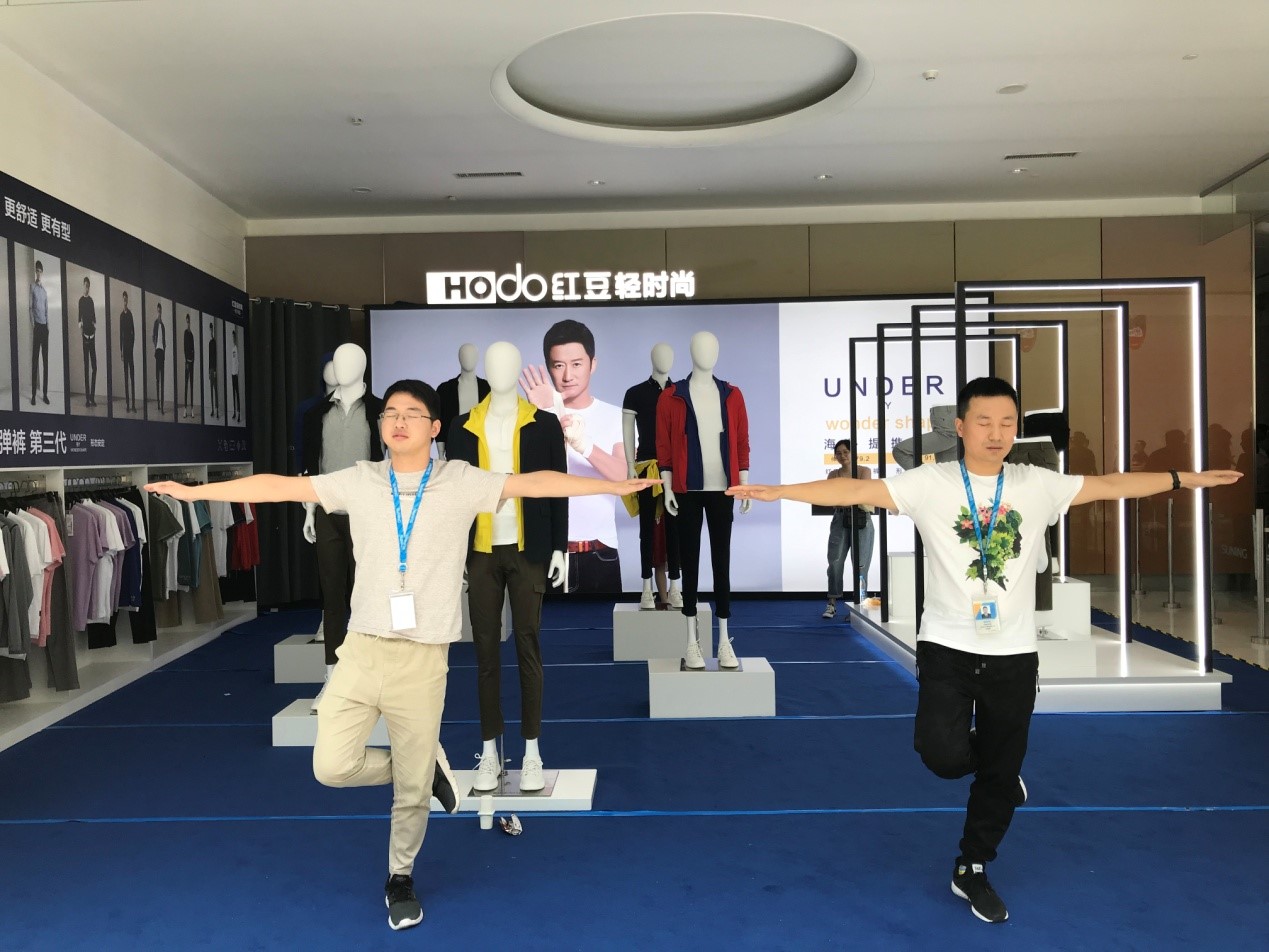 ? ? ? ? 新品發布,驚喜連連,紅豆快閃店也驚艷亮相蘇寧,快閃店以產品體驗為主,線上線下聯動,引爆七夕。現場紅粉爭相體驗紅豆3D高彈褲等人氣產品,沒有親身加入深蹲挑戰的紅粉似乎還不過癮,又紛紛加入快閃店的體驗互動,閉眼10秒挑戰大鵬展翅,在現場又掀起了一波高潮。