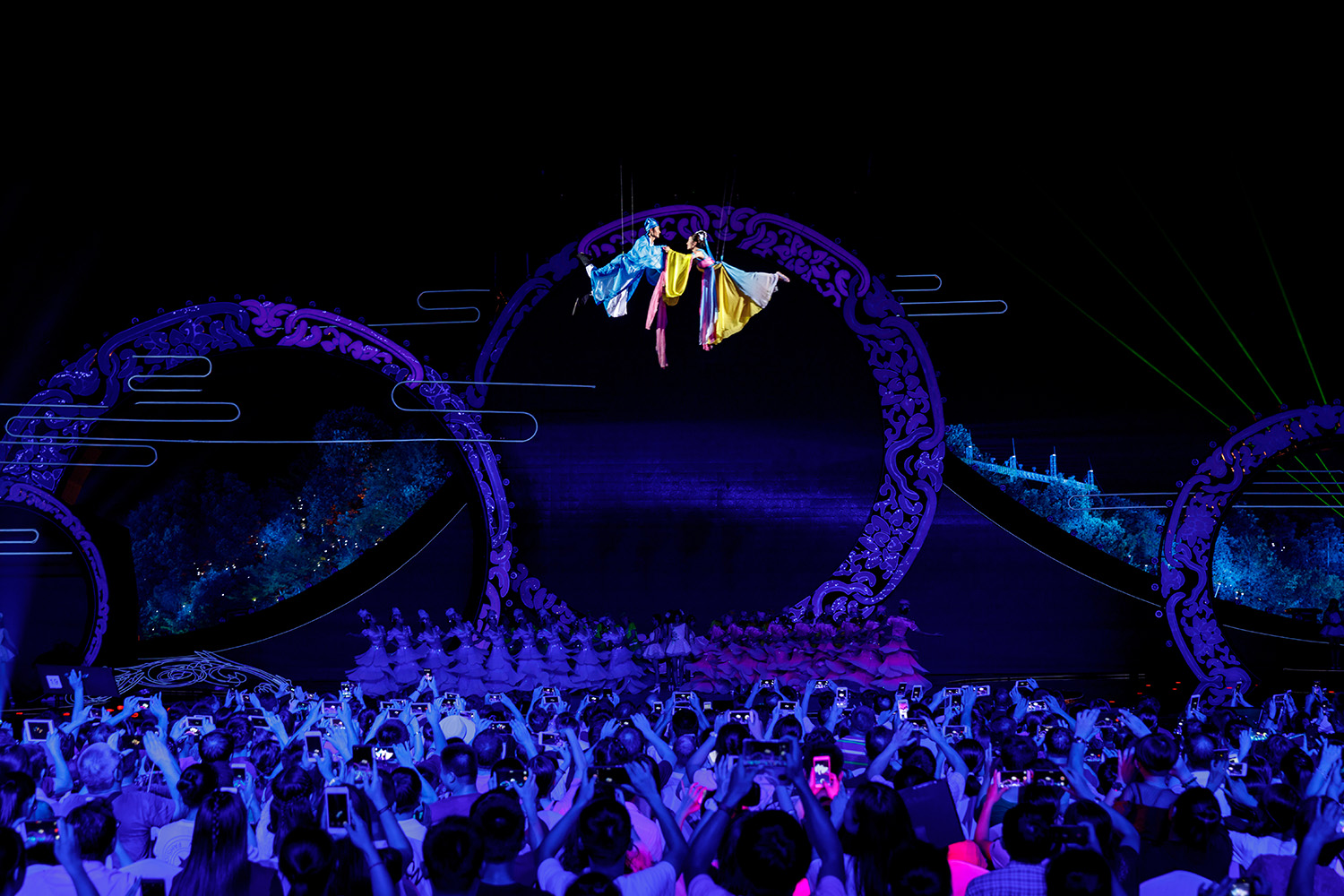 在弘揚傳統文化方面,紅豆集團一直都身體力行。紅豆七夕節的成功舉辦和多年堅持,便是紅豆集團弘揚傳統文化的有力見證。七夕節從最初在紅豆人的首倡和推動下,到如今成為了“我們的節日”,得到年輕人的追捧。一路走來,紅豆集團“用紅豆抵抗玫瑰”的執著堅定,受到社會各界的廣泛贊譽。此次紅豆集團攜手央視綜藝舉辦的七夕特別節目,也將傳統文化的元素嵌入了舞臺藝術和節目形式的各個角落中。伴隨著音樂的慢慢響起,由舞蹈演員扮演的“牛郎”和“織女”從舞臺的兩側慢慢飛向中間,“相聚團圓”。現場將古老的傳說——“牛郎織女鵲橋相會”的美麗畫面真實呈現在了觀眾的面前。