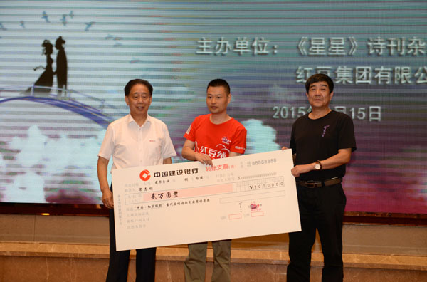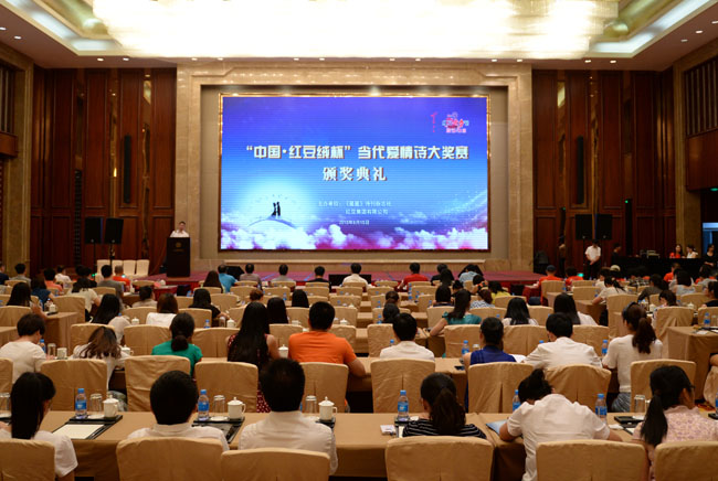 為了進(jìn)一步繁榮愛情詩創(chuàng)作,弘揚(yáng)正確愛情觀,特別是推動中國當(dāng)代愛情詩再度輝煌,2014年7月1日,由《星星》詩刊雜志社與紅豆集團(tuán)聯(lián)合啟動了“中國?紅豆絨杯”當(dāng)代愛情詩大獎賽征文活動,作為紅豆七夕節(jié)的一項重要活動。現(xiàn)在經(jīng)過一年的征集及后期評選,在今年七夕——中國情人節(jié)前夕頒獎。