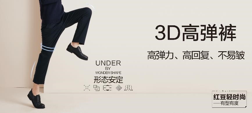 不知道該怎么選擇褲子?不知道自己適合什么版型?紅豆男裝的這款褲子可以為你解決以上問題。3D高彈褲是紅豆男裝的經(jīng)典熱賣款,高彈力無束縛的舒適穿著體驗(yàn),讓這款褲子成為紅豆男裝門店的明星產(chǎn)品。在深受歡迎的同時(shí),紅豆男裝精益求精,在第二代的基礎(chǔ)上進(jìn)行改良升級,即將推出第三代3D高彈褲。高彈力、高回復(fù)、不易皺,第三代3D高彈褲經(jīng)過層層打磨、細(xì)節(jié)推敲、不斷優(yōu)化,只為打造經(jīng)典,彰顯舒適與品質(zhì)。