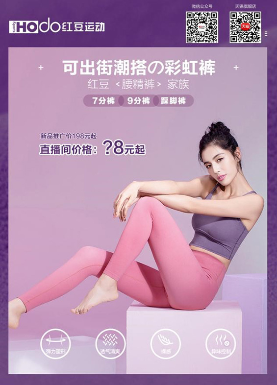 現(xiàn)在的女孩子都喜歡穿能夠凸顯身材的衣服,尤其是褲子,專挑能夠顯腿細(xì)腿長的。紅豆運動裝的新款小妖精褲,加高14cm超高腰設(shè)計,加寬腰面更帖和,收腹作用明顯,能夠凸顯完美S型身材。面料非常柔軟舒適,沒有壓迫感,能夠滿足任何大幅度拉伸活動。而且,面料還使用了抗菌劑,能有效控制異味,如化學(xué)氣味,汗臭等,還可以抑制微生物細(xì)菌滋生,適合各種敏感肌穿著。