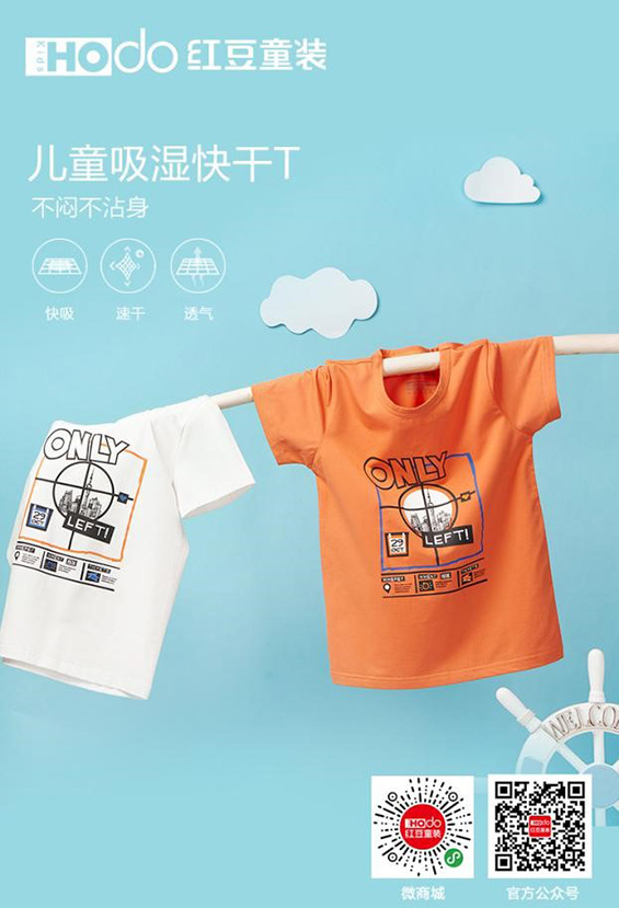 夏天就要到了,大家都知道小孩子好動易出汗,非常容易受涼,因此紅豆童裝推出了快干T 。此款T恤在保持舒適性的同時,又在原有的棉成分中加入coolpass吸濕排汗聚酯纖維,這種面料能在大量出汗的情況下,利用內(nèi)部“十字”異形內(nèi)凹槽水槽及毛吸原理將水分排出,達(dá)到速吸快干的效果。這樣,孩子在出汗后,衣服都不會有粘貼皮膚產(chǎn)生的濕冷感。這是一款非常適合孩子夏季穿著的單品。成立于1994年的紅豆童裝堅持以“健康舒適”為產(chǎn)品理念,致力于打造出適合中國兒童的國民童裝。