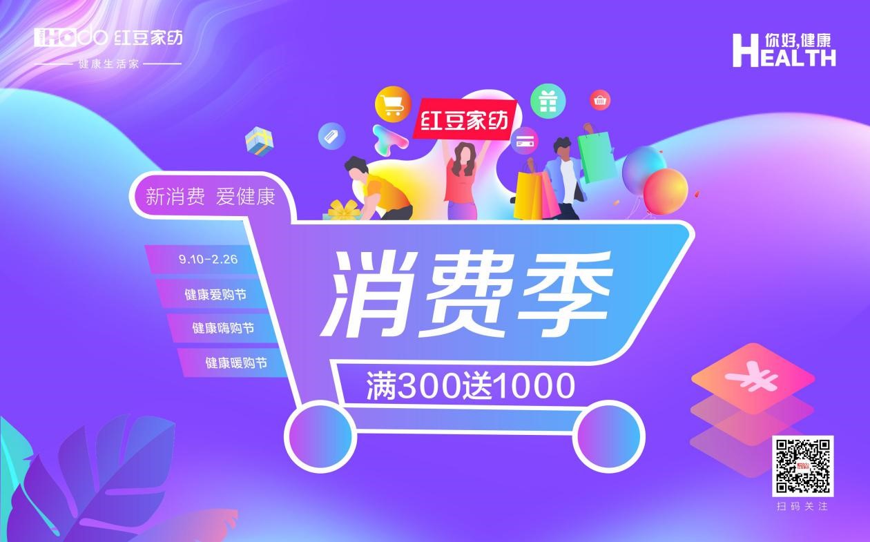 金秋如錦,今年適逢國慶、中秋“雙節合一”。在“雙節”到來之際,紅豆家紡為進一步激活大眾健康睡眠消費潛力,于2020年9月10日舉辦 “新消費.愛健康——紅豆家紡消費季”主題系列活動,讓用戶在“紅豆家紡消費季”多買多送,一次買個夠,活動期間推出滿300元送1000元券包,以前端企業讓利,后端鏈接用戶,為用戶提供有價值的消費福利,持續為用戶輸出健康睡眠品牌理念。