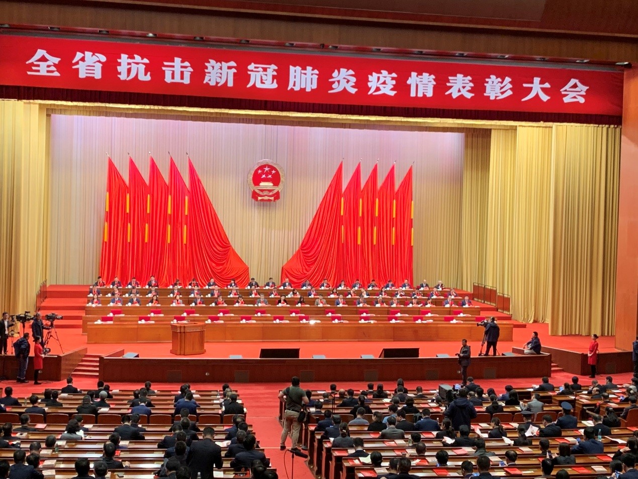 弘揚偉大抗疫精神,走好新時代的長征路!11月26日上午10時,全省抗擊新冠肺炎疫情表彰大會在江蘇大劇院隆重舉行。會議表彰了我省在抗擊新冠肺炎疫情斗爭中作出突出貢獻的先進個人和先進集體。江蘇省委書記婁勤儉出席表彰大會并講話,省長吳政隆主持大會。全國抗擊新冠肺炎疫情先進個人、全國優秀共產黨員,紅豆集團黨委書記、董事局主席周海江與省內其他國家級榮譽代表一起出席大會,并在主席臺就座,見證了這一意義非凡的榮譽時刻。