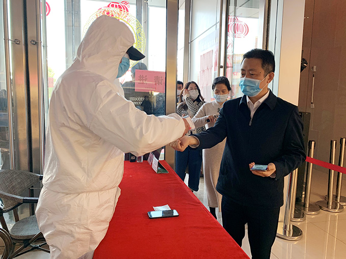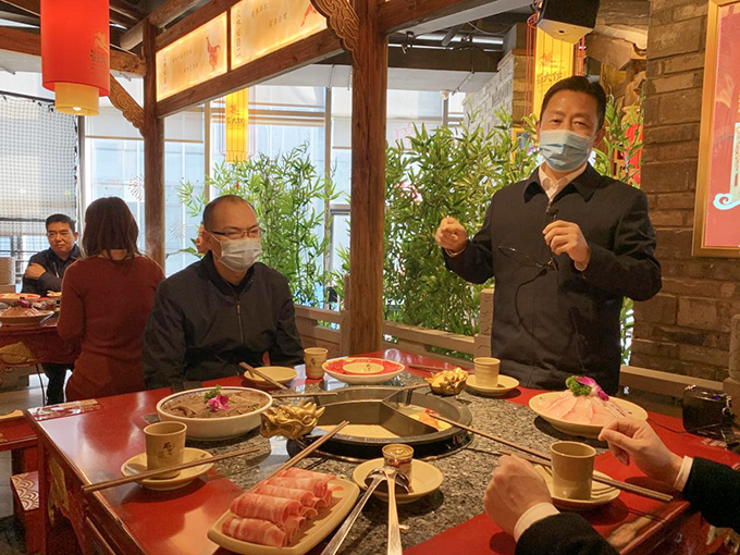 為餐飲行業打CALL!3月15日星期天中午,紅豆集團董事局主席兼CEO周海江帶領集團黨員干部來到剛剛恢復營業的無錫東港紅豆萬花城蜀大俠火鍋店,通過測溫、掃錫康碼包括手部消毒后進入店堂點餐消費,以實際消費行動支持中小企業的復蘇。