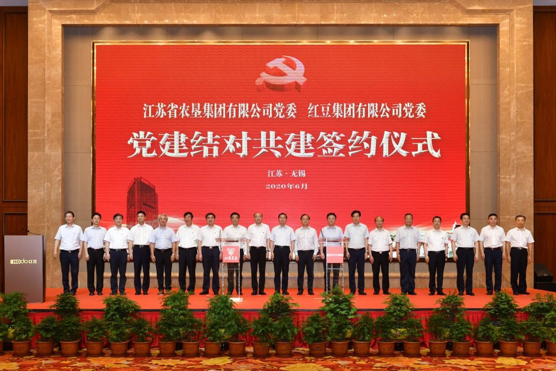 民企和國企強強聯合,以高質量黨建引領高質量發展。6月12日,紅豆集團有限公司黨委、江蘇農墾集團有限公司黨委黨建共建簽約儀式在紅豆杉莊舉行,旨在不斷增強企業黨組織的政治功能和組織力,提升新時代黨建工作質量和成效,促進雙方黨建工作和業務經營深度合作,同時也是創新國企、民企黨建結對共建模式的積極探索。